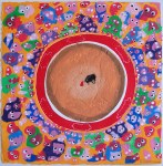 French Neo-Pop artist Hervé Di Rosa was born in Sète, France in 1959. His signature caricatures have been described by critics as bold, loud, crass, sexual and expressionistic, but always in keeping with the spirit of Pop. The French-born artist, aloof to the conventions of high-art, has embraced the so-called crafts for over 25 years and has unorthodoxly adopted an aesthetic akin to the common people. For the last fourteen years Di Rosa has traveled the world applying his bold designs to traditional techniques. He began his tour du monde in Sophia creating his own icons in the traditional Bulgarian icon-painting style. From there he went on to design woven baskets with Zulu craftsmen in South African, Mullah (sewn clothes) in Colombia, bronze sculptures with Bamouan artisans in West Cameroon, lacquers in Vietnam, and sequin Voodoo flags in Haiti. Di Rosa has actively incorporated and revitalized the world crafts by integrating them into his own work.